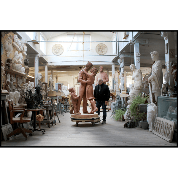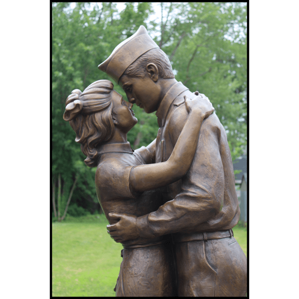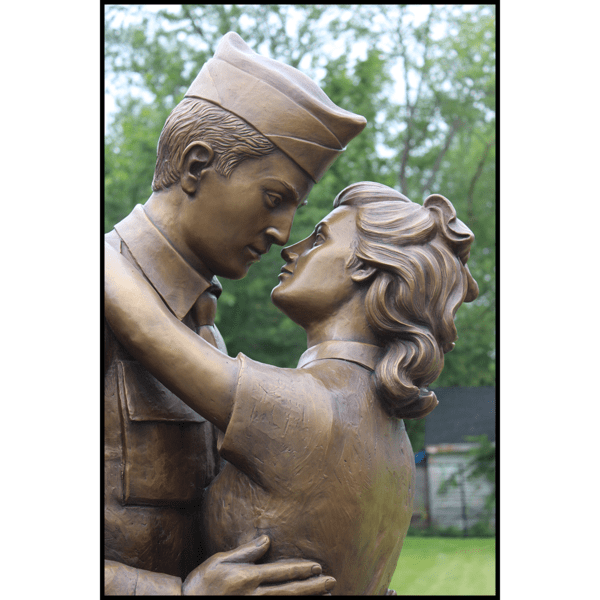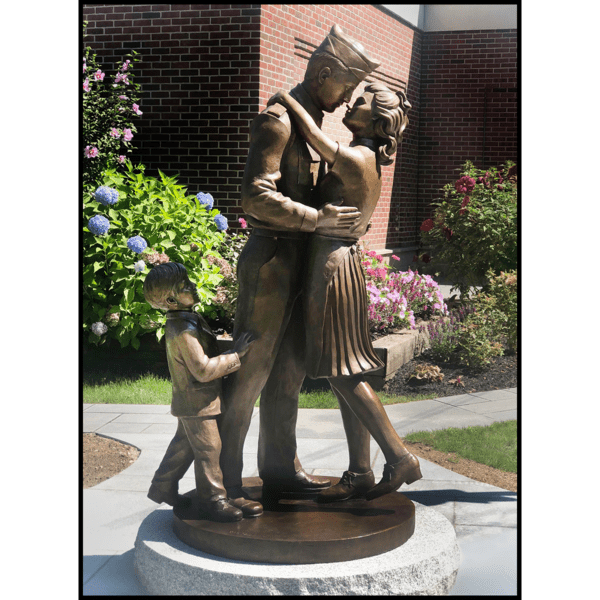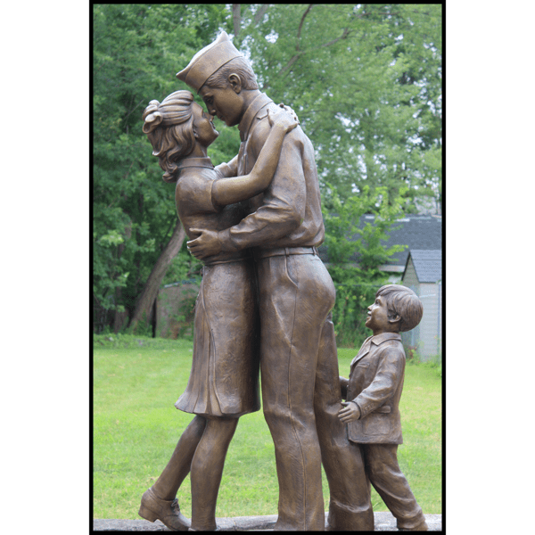 The Wright Museum of World War II desired to create for their museum grounds an iconic sculpture representing the celebratory homecomings of American soldiers from the front. The sculpture depicts a husband reuniting with his wife and young son, overjoyed and relieved that they can continue their life now that the war has ended. Creating the sculpture meant a lot to Robert whose father was drafted to fight in WWII. Although his parents weren’t yet married and hadn’t started a family, Robert envisioned the scene as his father coming home from the war, embracing his mother. While to Robert the sculpture may represent his parents, for viewers he wanted it to be a universal reflection of the experience had by so many others.